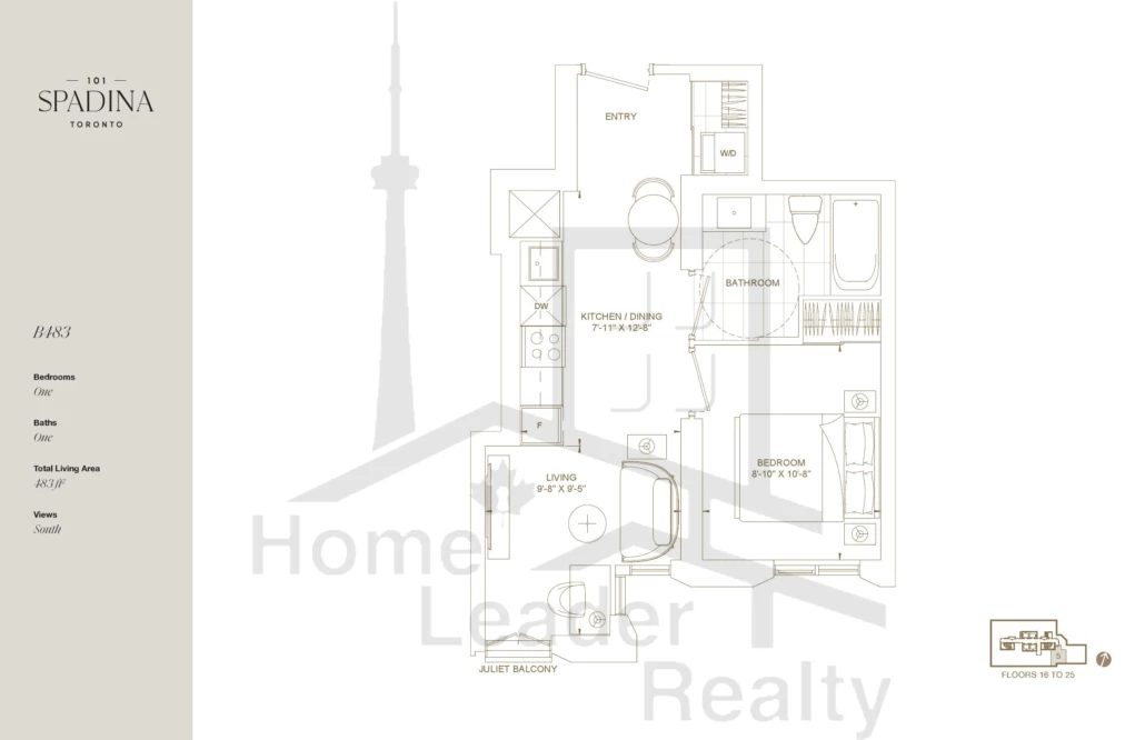 C509 1.5 Bed , 1 Bath 509 SQFT South