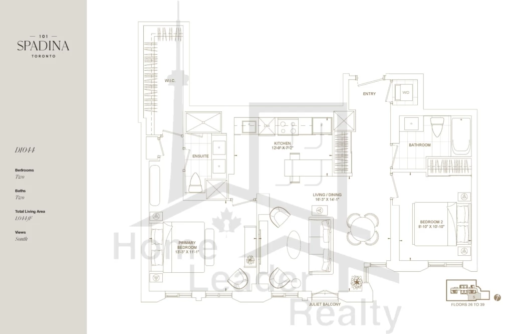 D1044 2 Bed , 2 Bath 1044 SQFT South