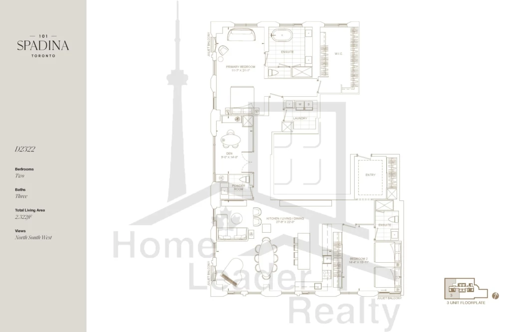 D2322 2 Bed , 3 Bath 2322 SQFT South West