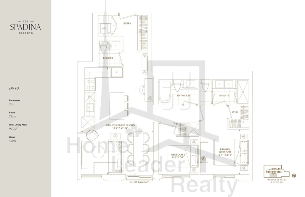 D957 2 Bed , 2 Bath 957 SQFT South West
