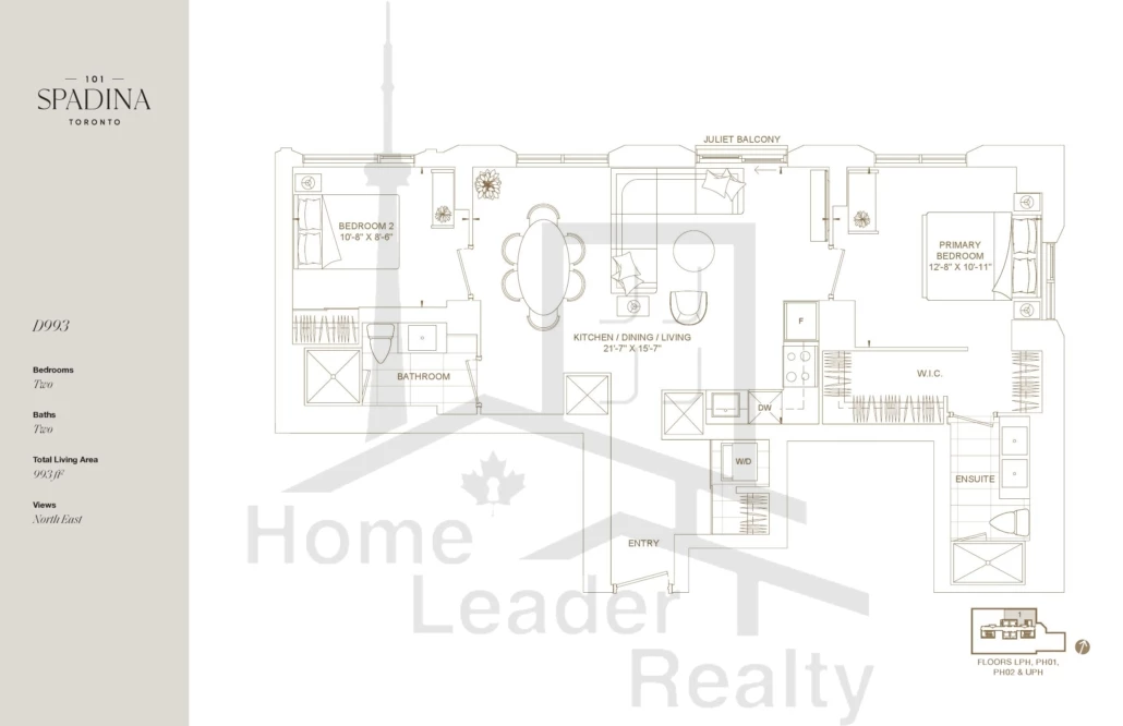 D993 2 Bed , 2 Bath 993 SQFT North East