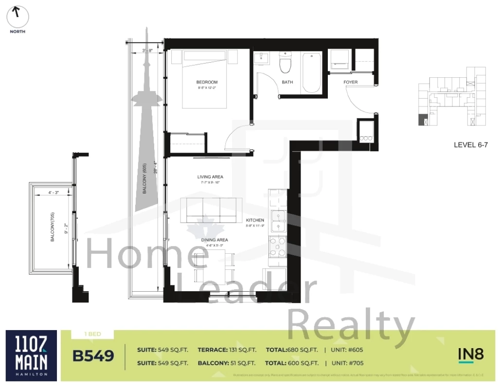 C507 1.5 Bed , 1 Bath 507 SQFT North