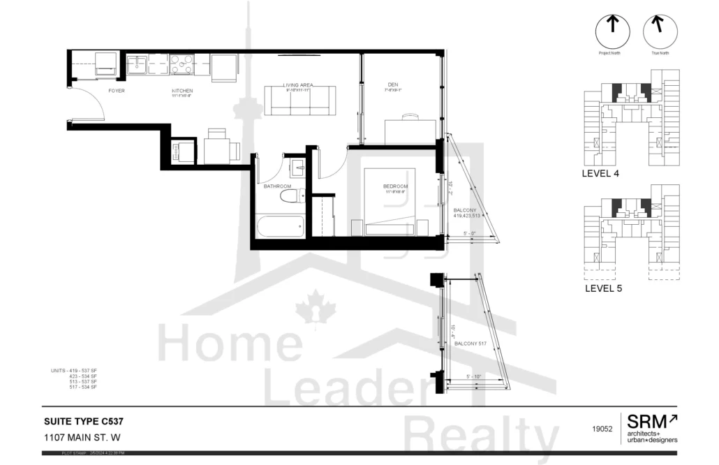 C524 1.5 Bed , 1 Bath 519 SQFT North