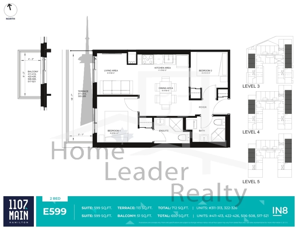 D599 1.5 Bed , 2 Bath 599 SQFT North