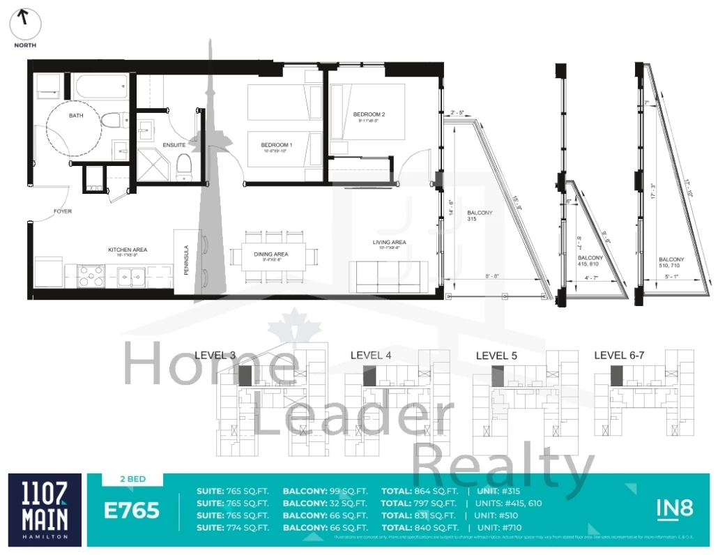 E657t 2 Bed , 2 Bath 657 SQFT North East