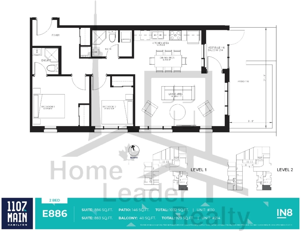 E657t 2 Bed , 2 Bath 657 SQFT North East