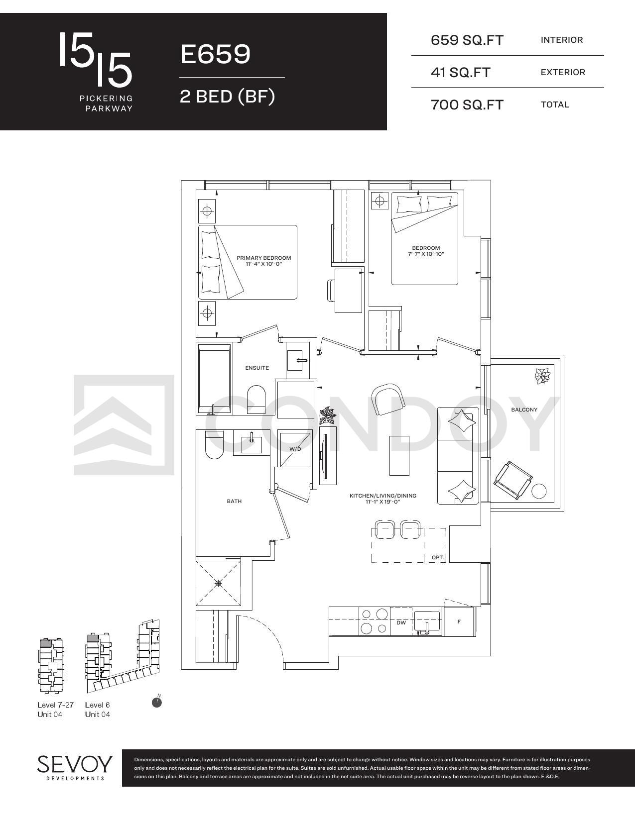 E659 (BF) 2 Bed , 2 Bath 659 SQFT North West