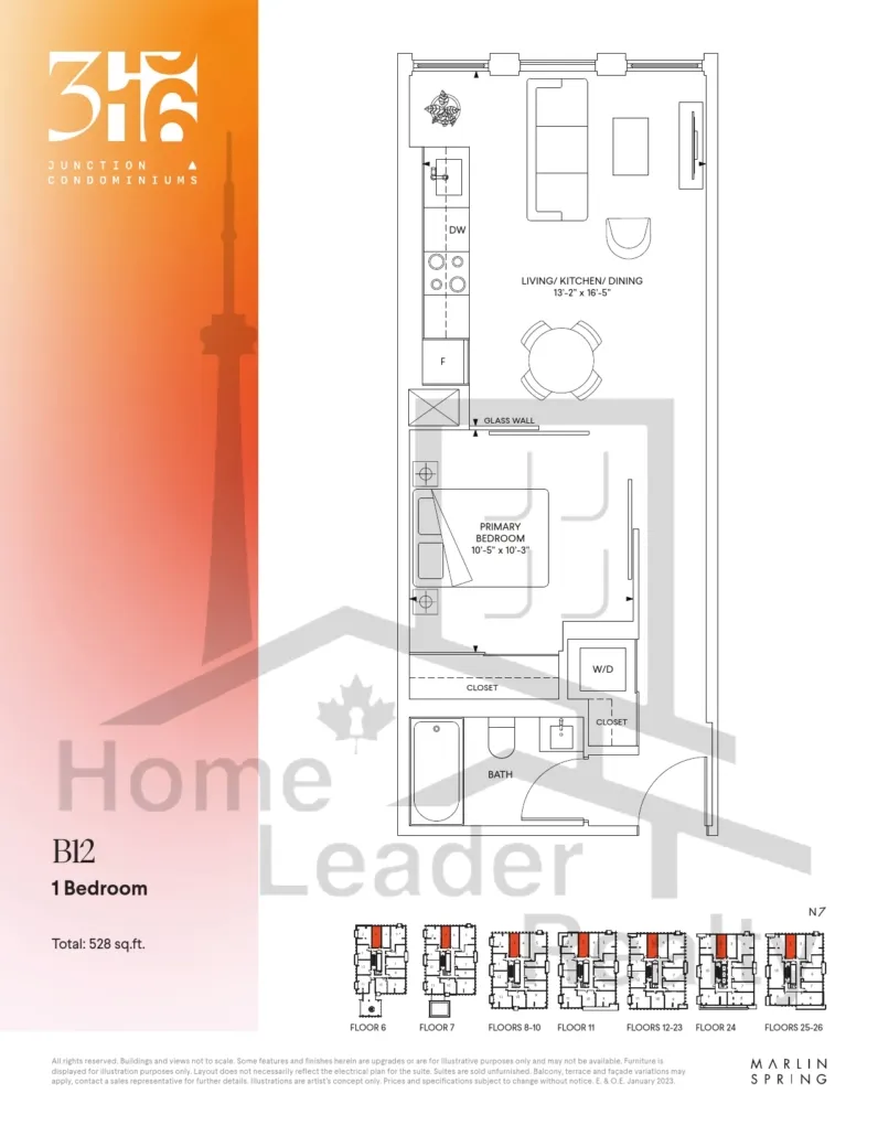 B7 1 Bed , 1 Bath 495 SQFT south west