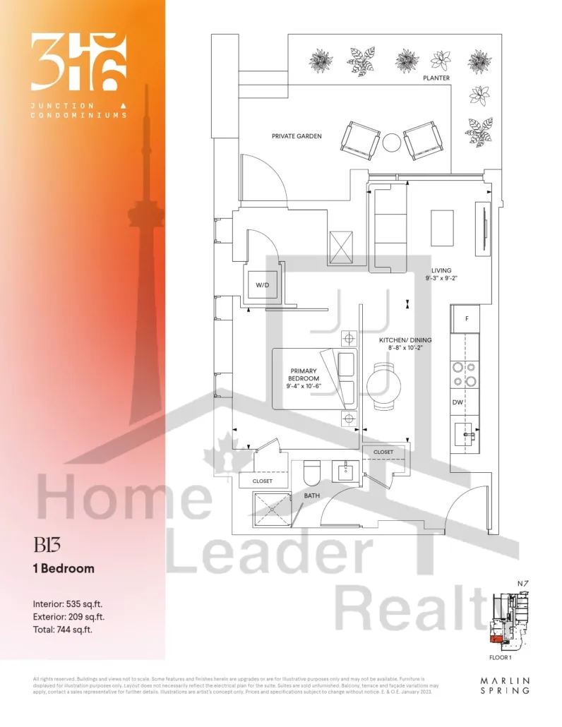 E12 2 Bed , 2 Bath 735 SQFT North West