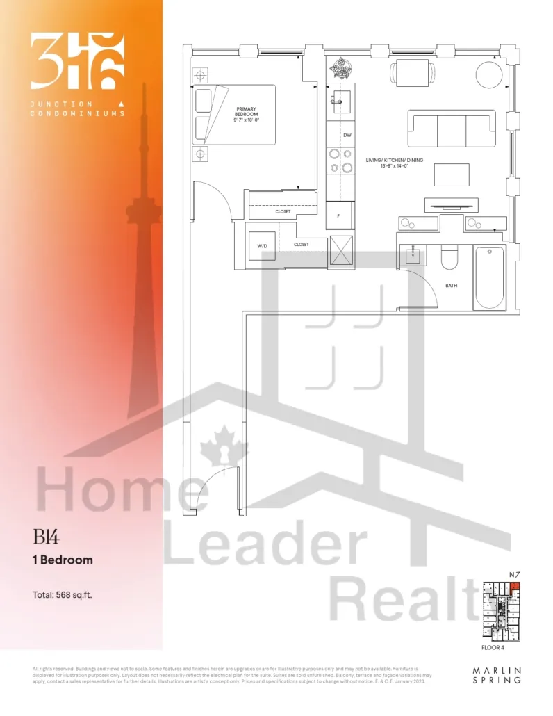 B14 1 Bed , 1 Bath 568 SQFT North East