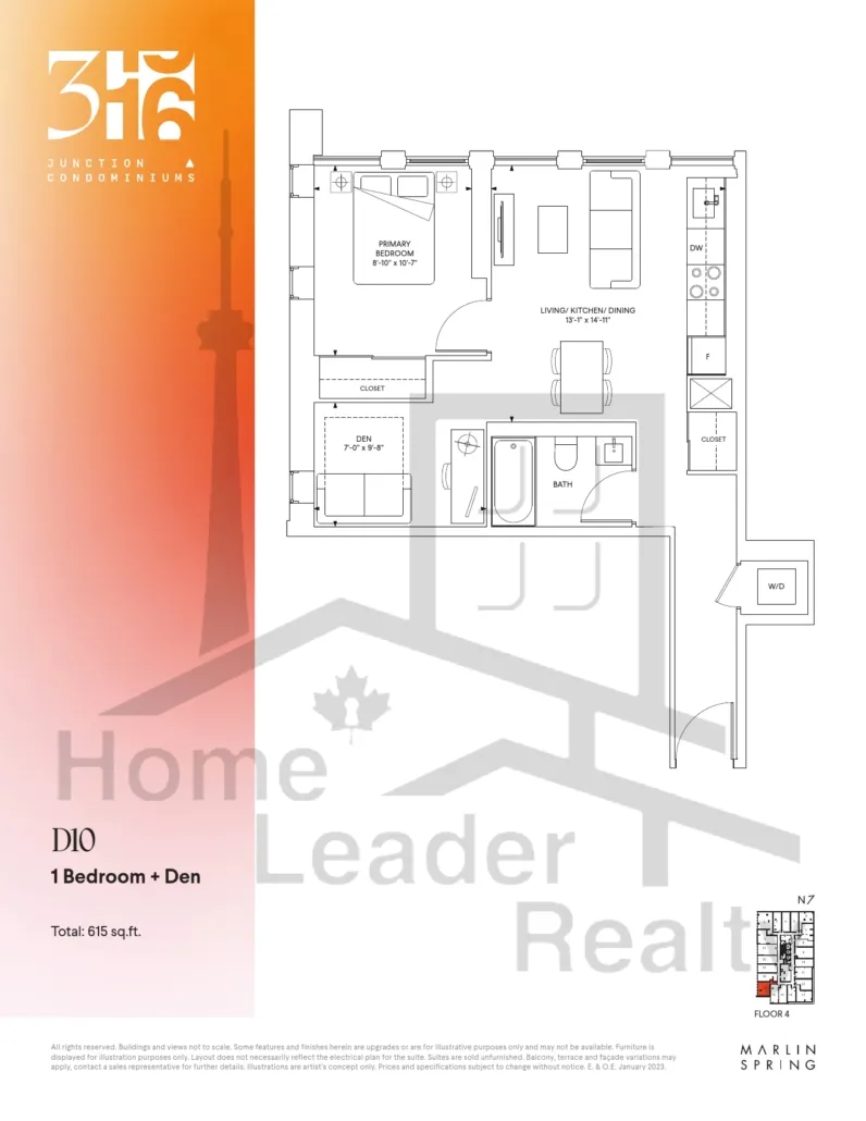 D10 1.5 Bed , 1 Bath 615 SQFT South West
