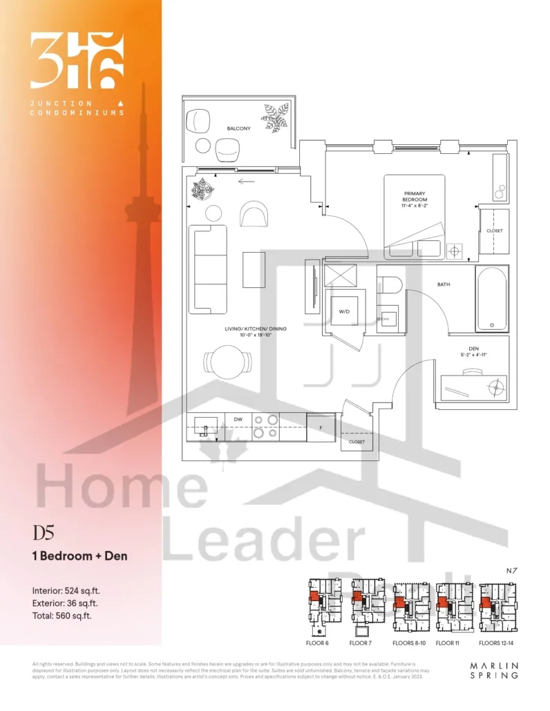 D5 1.5 Bed , 1 Bath 524 SQFT West