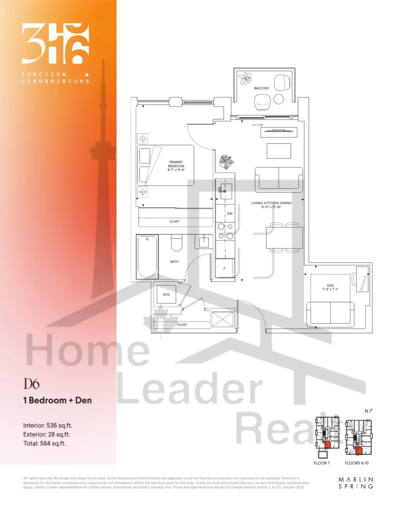 D7 1.5 Bed , 1 Bath 549 SQFT South