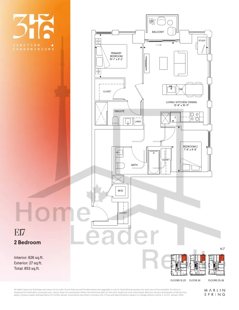 E12 2 Bed , 2 Bath 735 SQFT North West