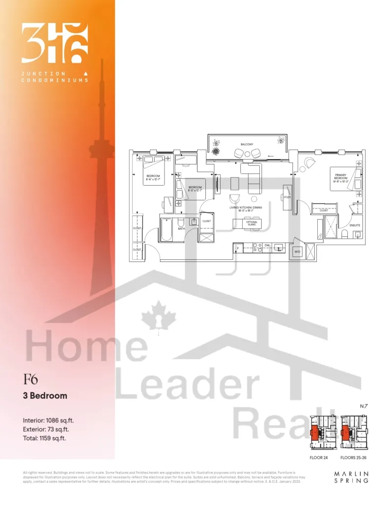 F6 3 Bed , 2 Bath 1086 SQFT West