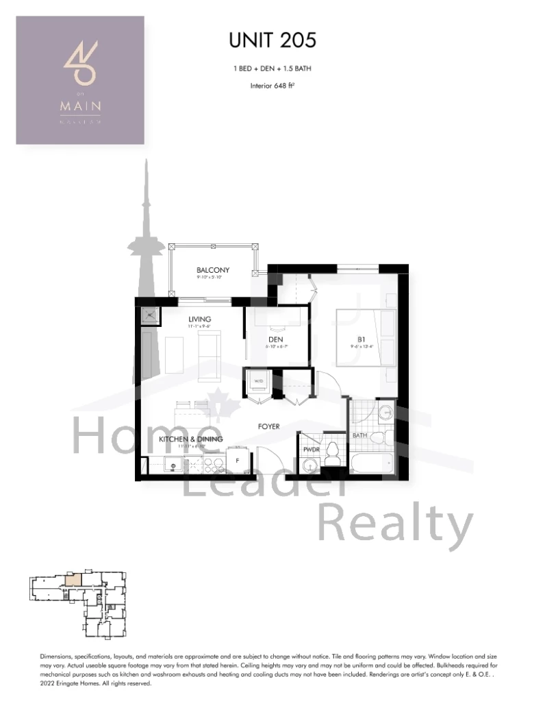 205 1.5 Bed , 1.5 Bath 648 SQFT