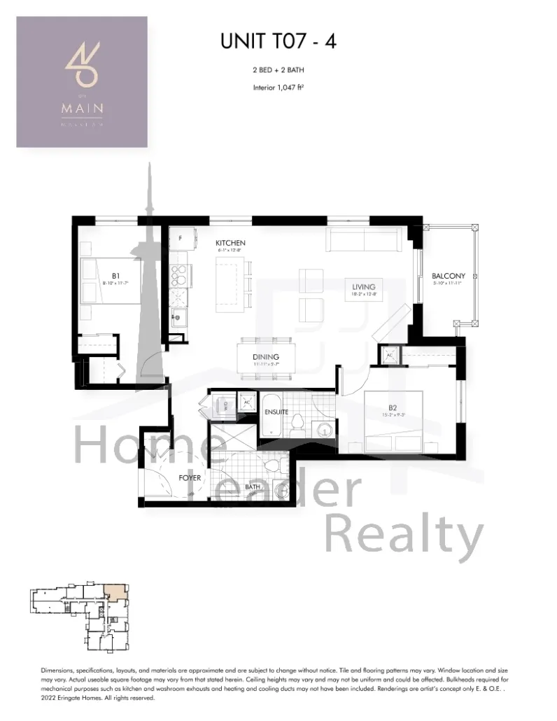 46 on Main Condos | T07-4 2 beds & 2 baths
