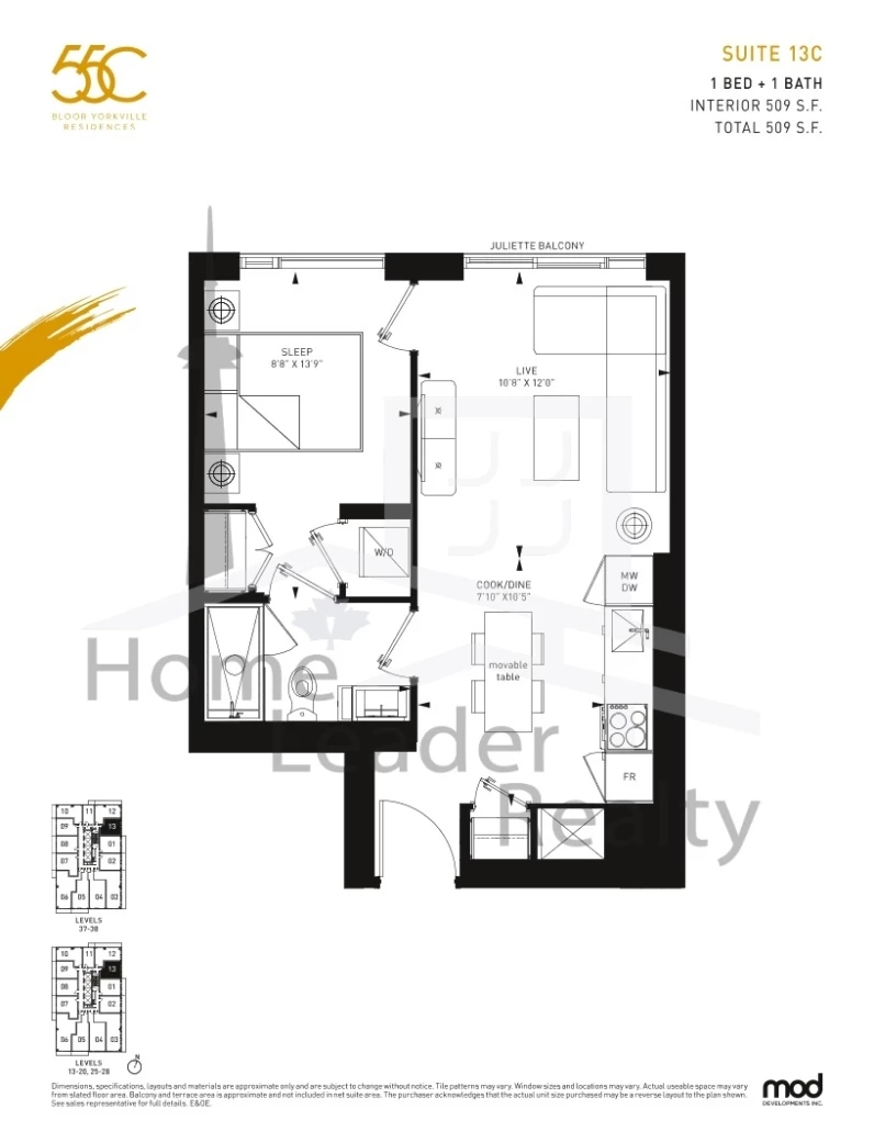 1508 (08B) 1 Bed , 1 Bath 537 SQFT West