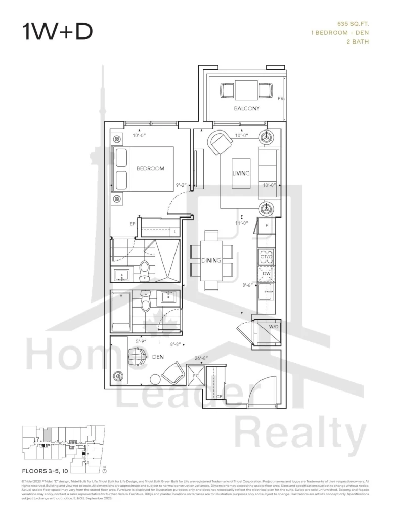 1W+D 1.5 Bed , 2 Bath 635 SQFT North