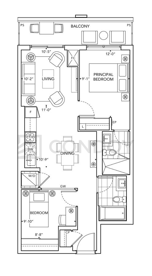 2L 2 Bed , 2 Bath 803 SQFT South West