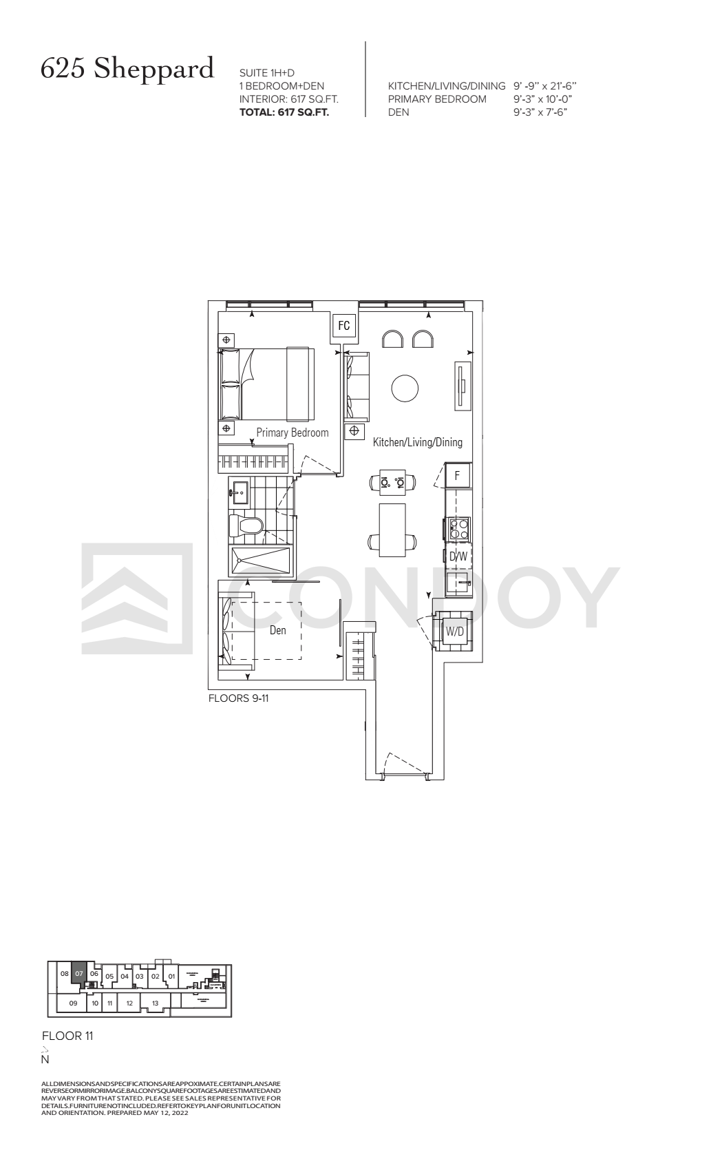625 Sheppard Condos 1H+D Floorplan