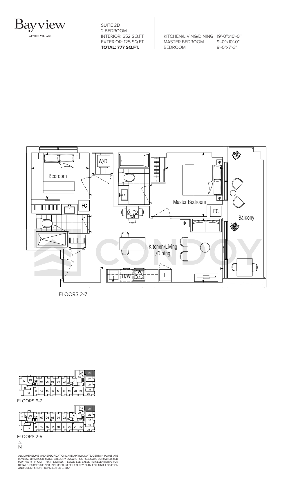 2D 2 Bed , 2 Bath 652 SQFT North