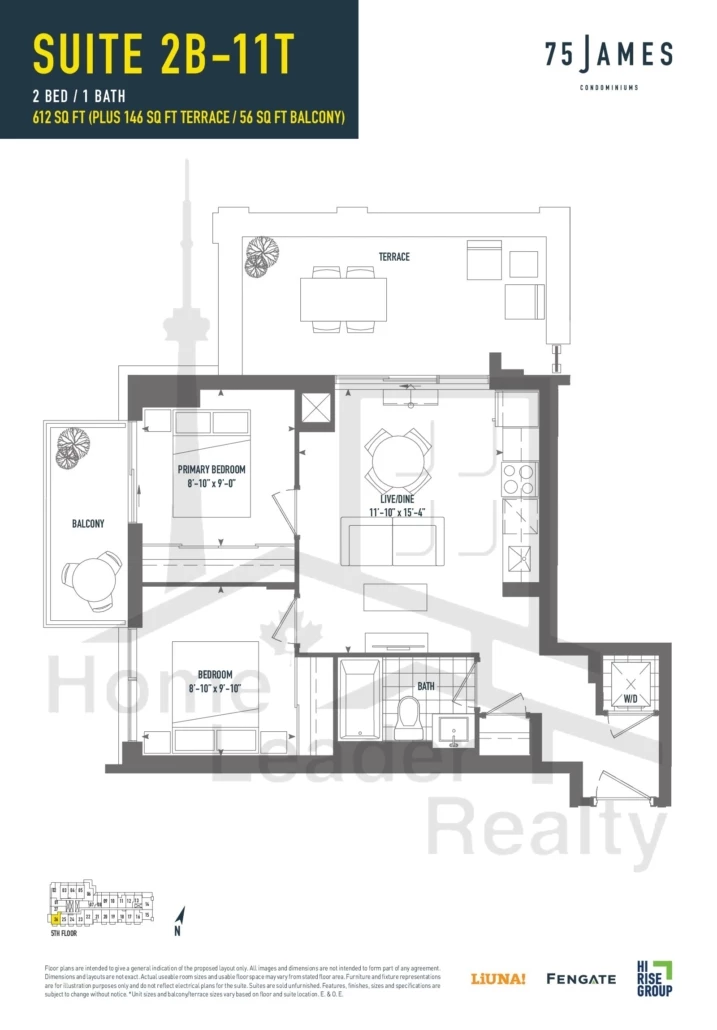 75 James Condos | 526 (2B-11T) 2 beds & 1 bath