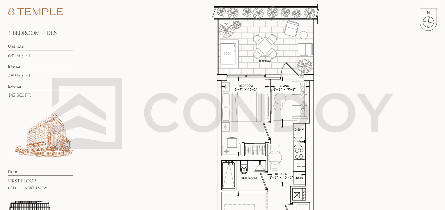 489 1.5 Bed , 1 Bath 489 SQFT North