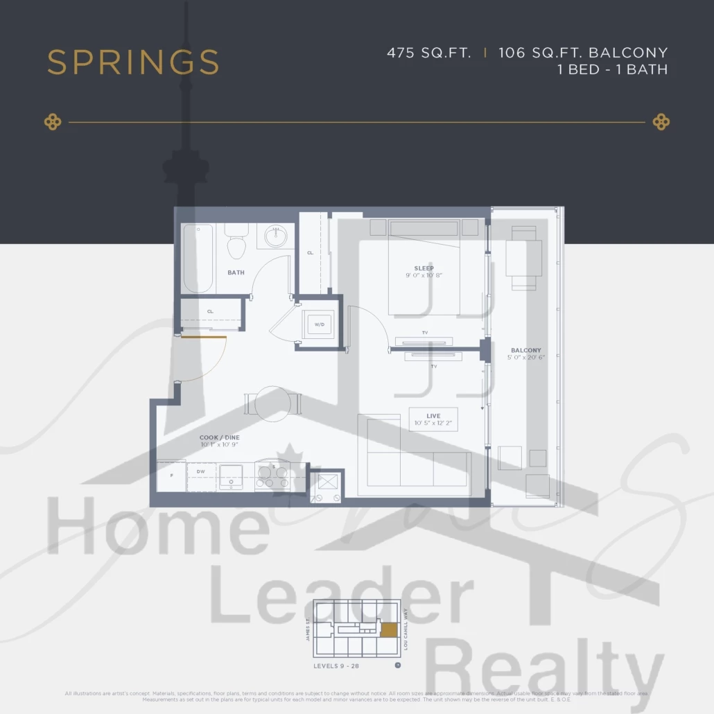 Springs Unit 1503 1 Bed , 1 Bath 475 SQFT South East