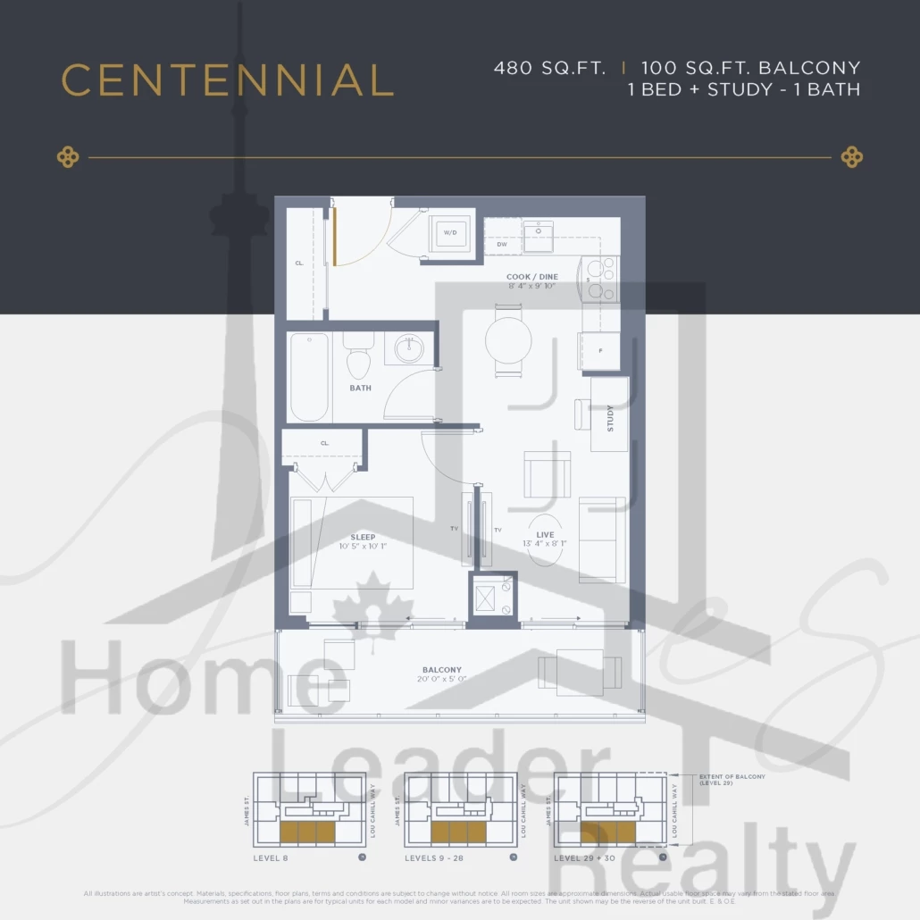 1306 Centennial 1.5 Bed , 1 Bath 480 SQFT South West