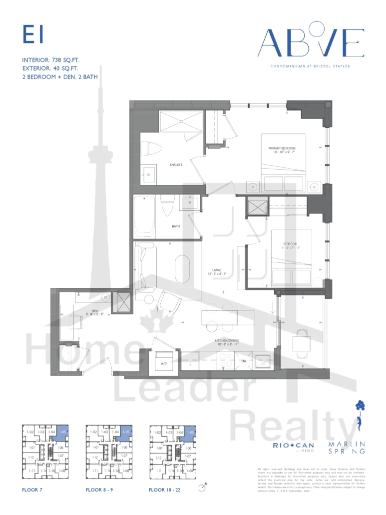 705 2B+D 2.5 Bed , 2 Bath 738 SQFT North East