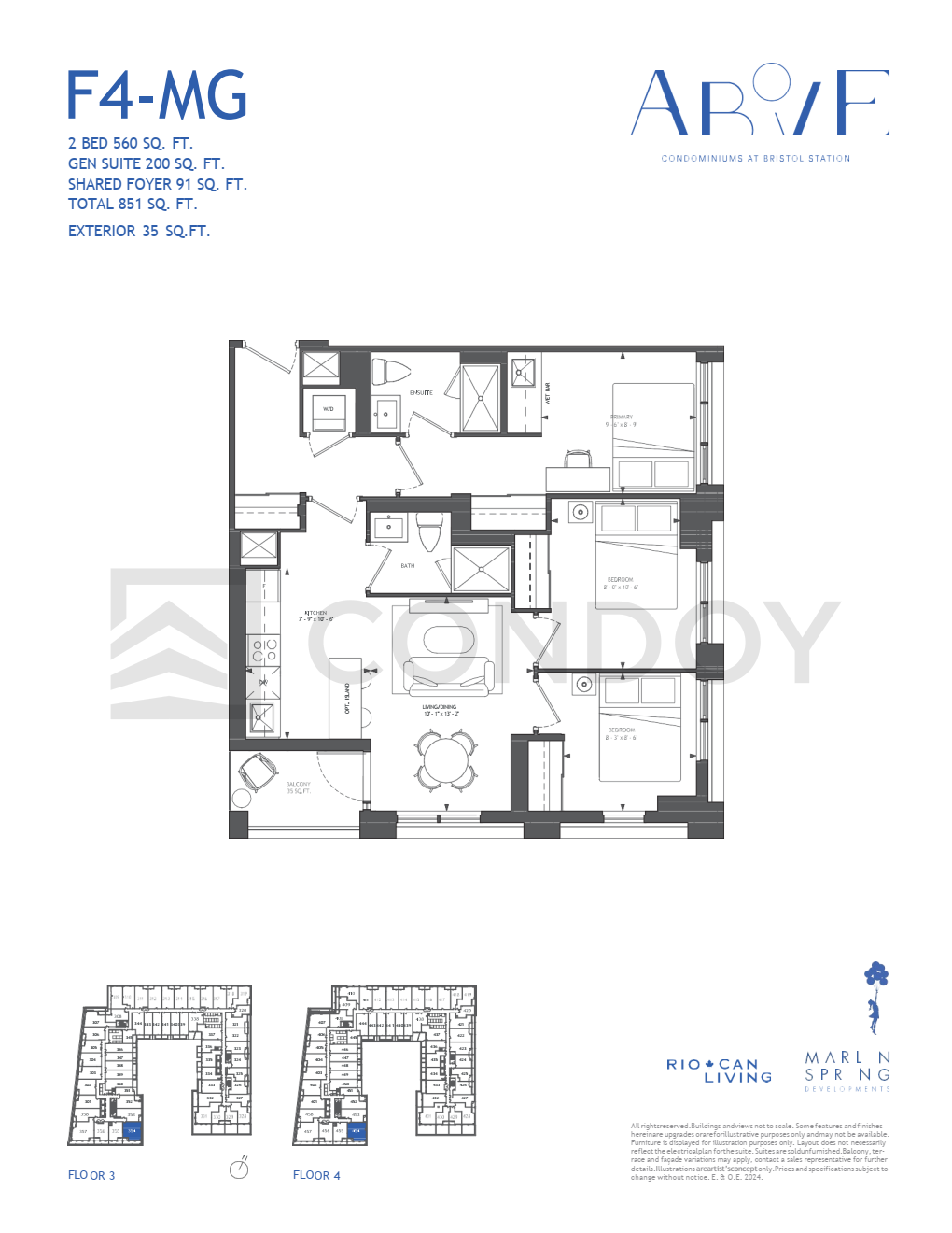 F4-MG 2.5 Bed , 2 Bath 851 SQFT SE
