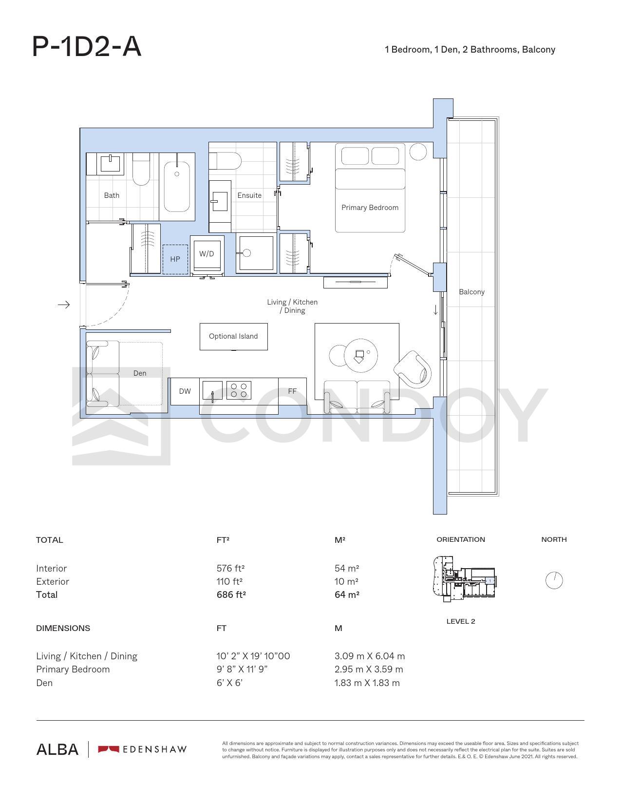 Alba Condos | P-1D2-A 1 bed & 2 baths