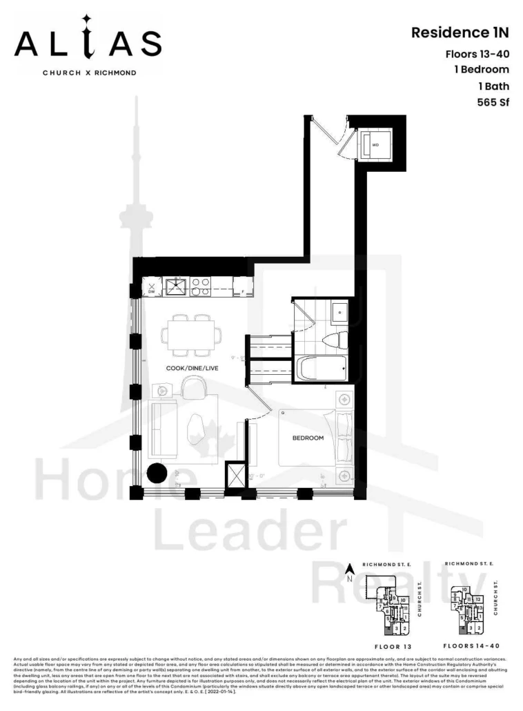 1N 1 Bed , 1 Bath 565 SQFT South West - - More Info