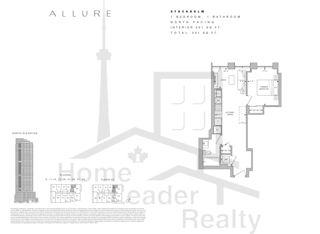 Stockholm 1 Bed , 1 Bath 501 SQFT North