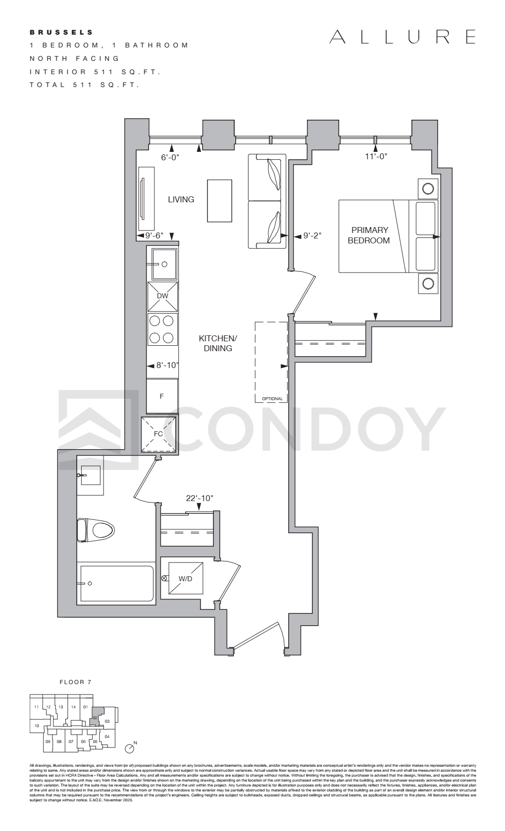 Brusells 1 Bed , 1 Bath 511 SQFT North