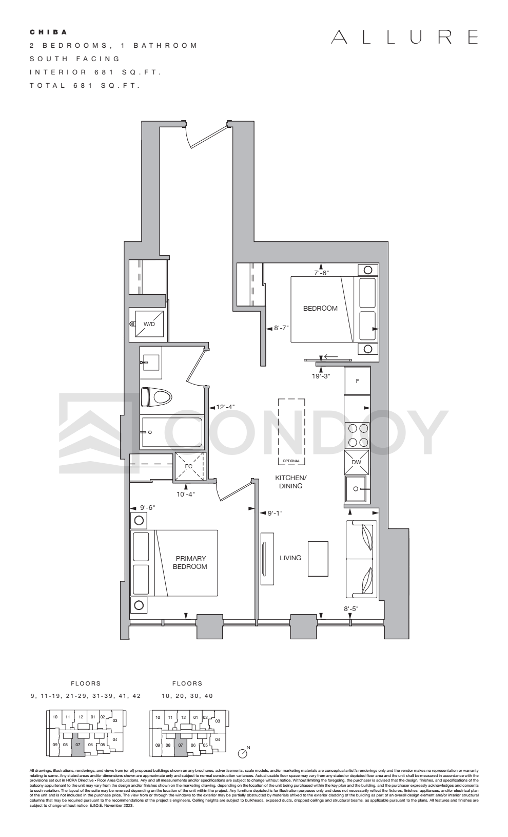 Chiba 2 Bed , 1 Bath 681 SQFT South