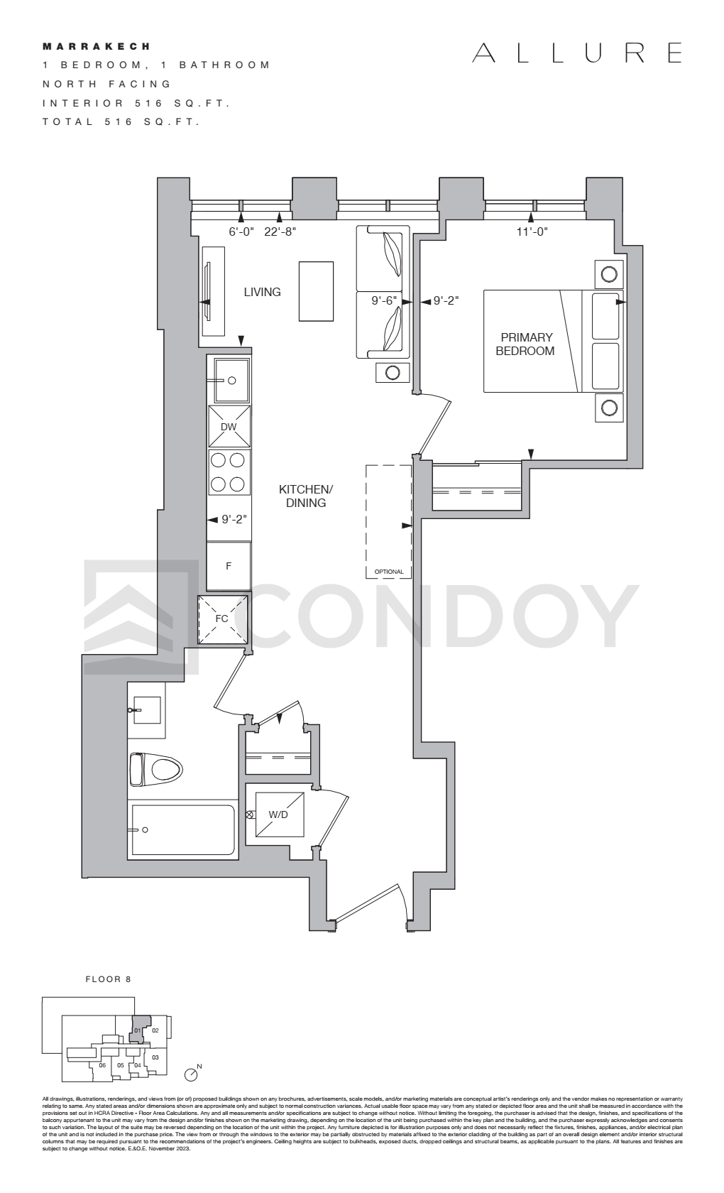 Marrakech 1 Bed , 1 Bath 516 SQFT North
