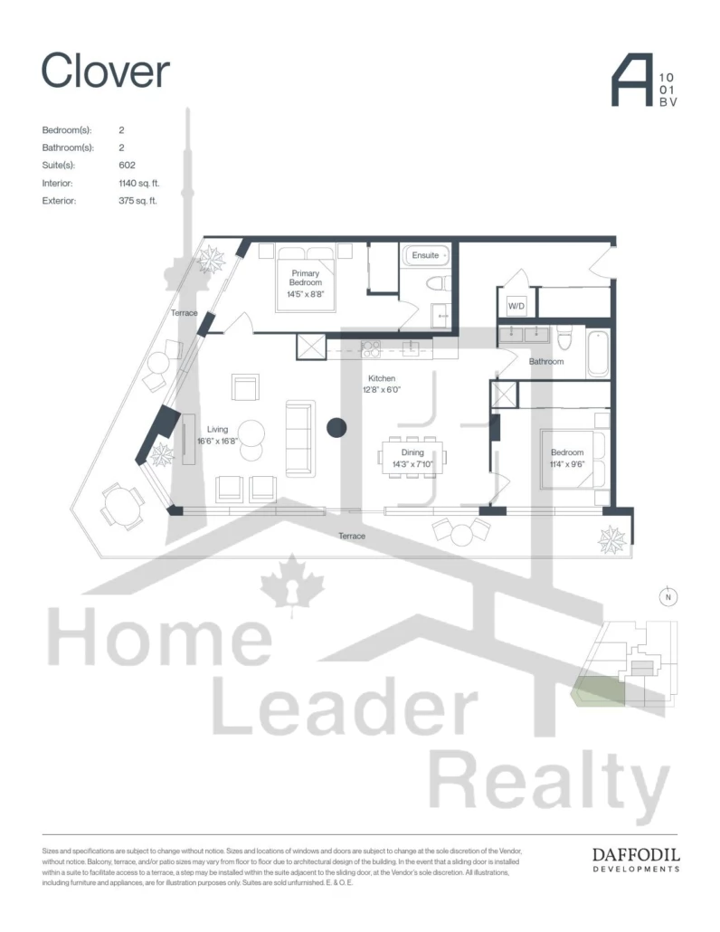 Clover 2 Bed , 2 Bath 1140 SQFT South West