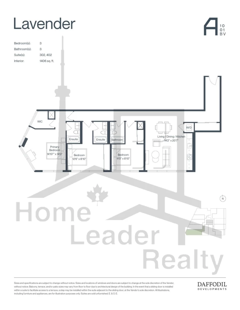Lavender 3 Bed , 3 Bath 1406 SQFT South West