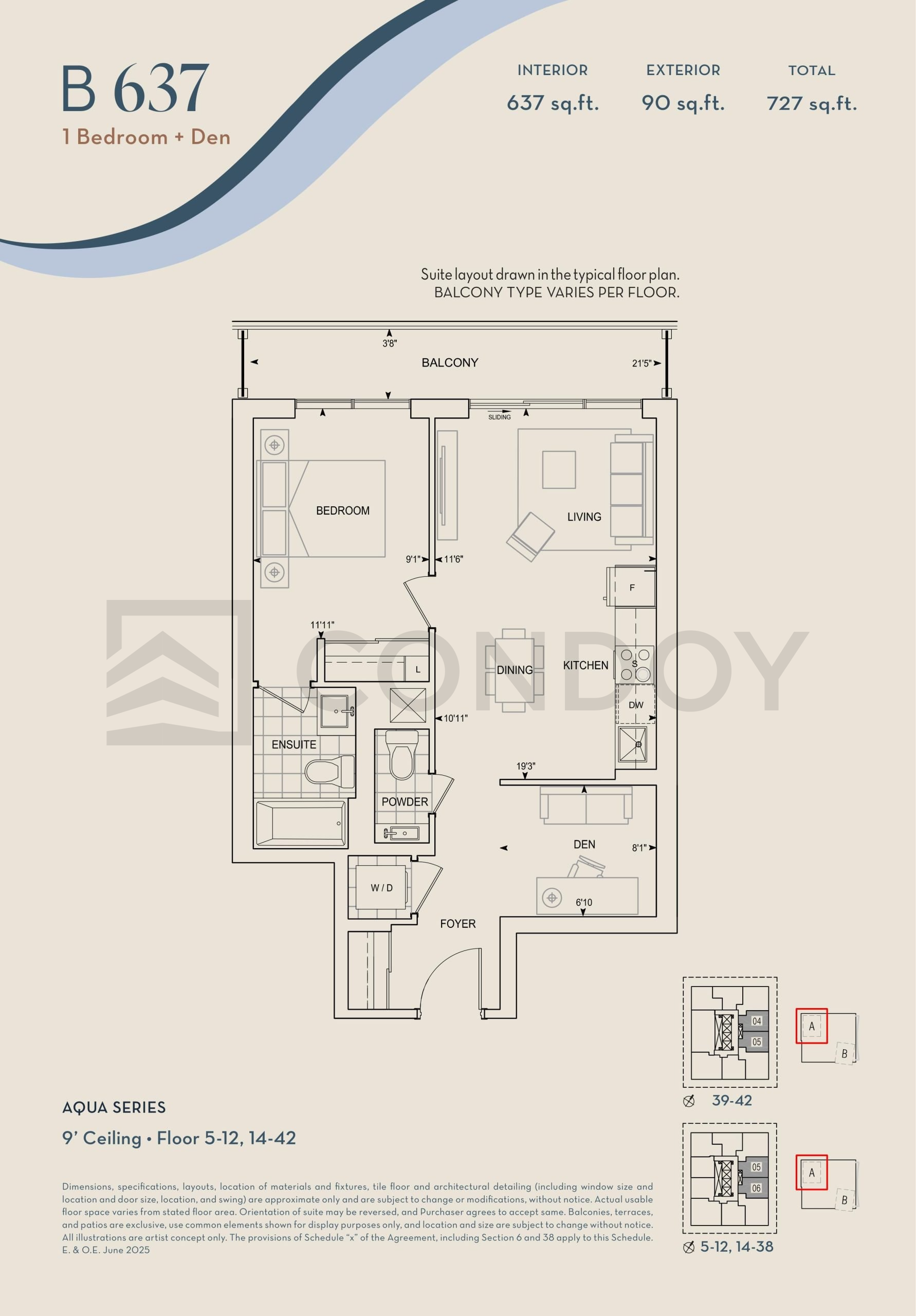 Interior Size : 637 sq.ft.
