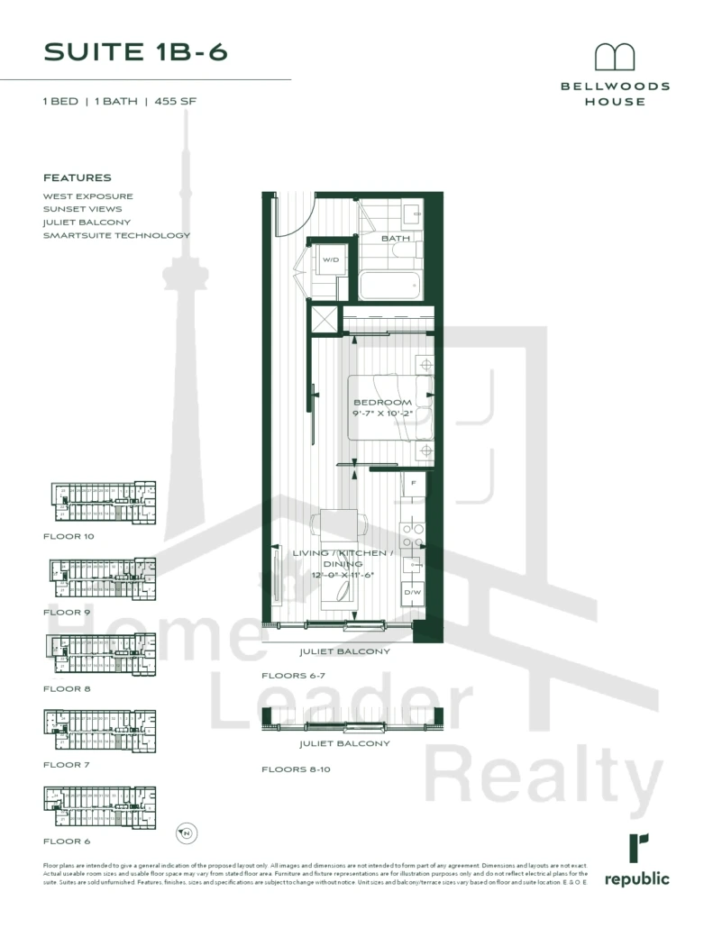 | available   | SUITE 1B-6 | 1 Bed , 1 Bath | 445 SQFT | West |