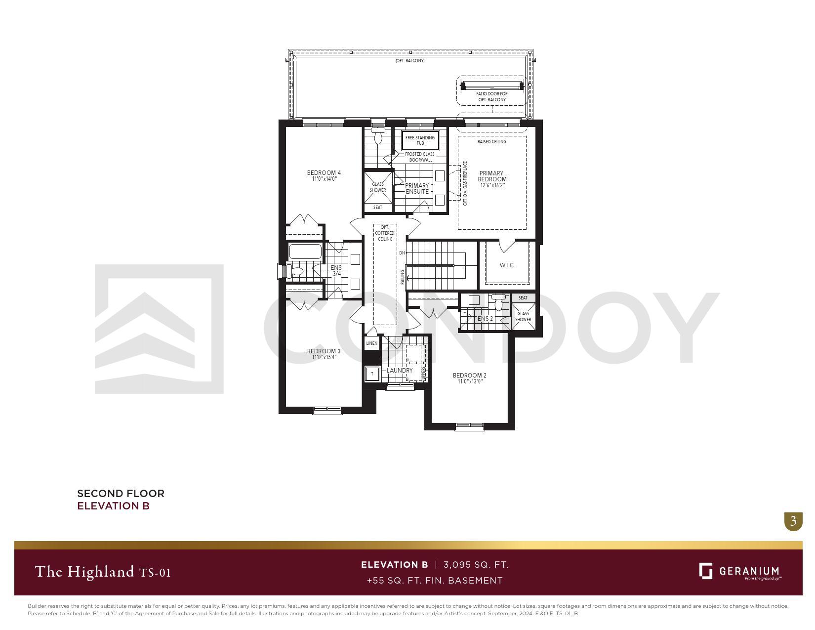 THE HIGHLAND TS-01 ELEV. B 4 Bed , 3.5 Bath 3095 SQFT