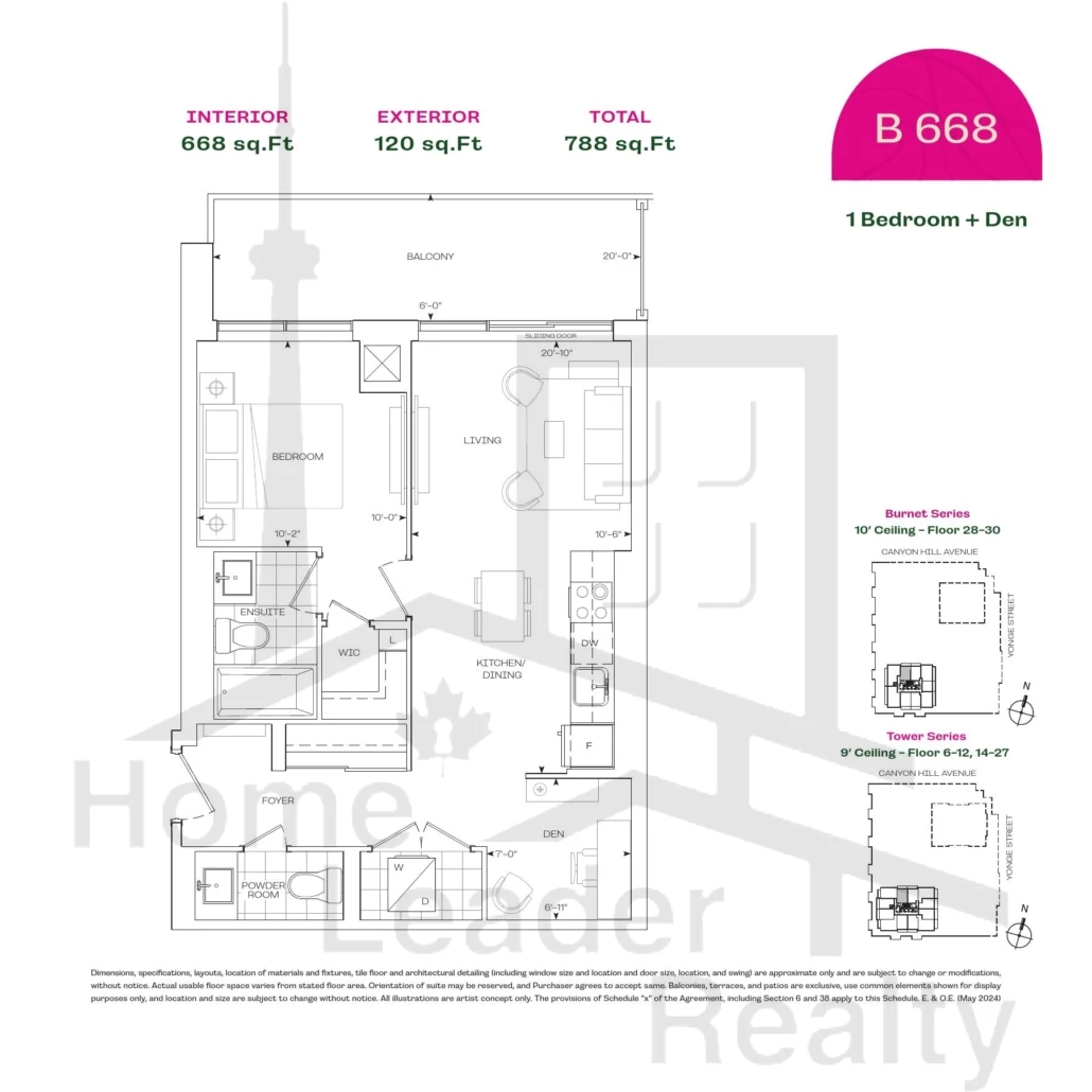 B668 1B+D 1.5 Bed , 1.5 Bath 668 SQFT North