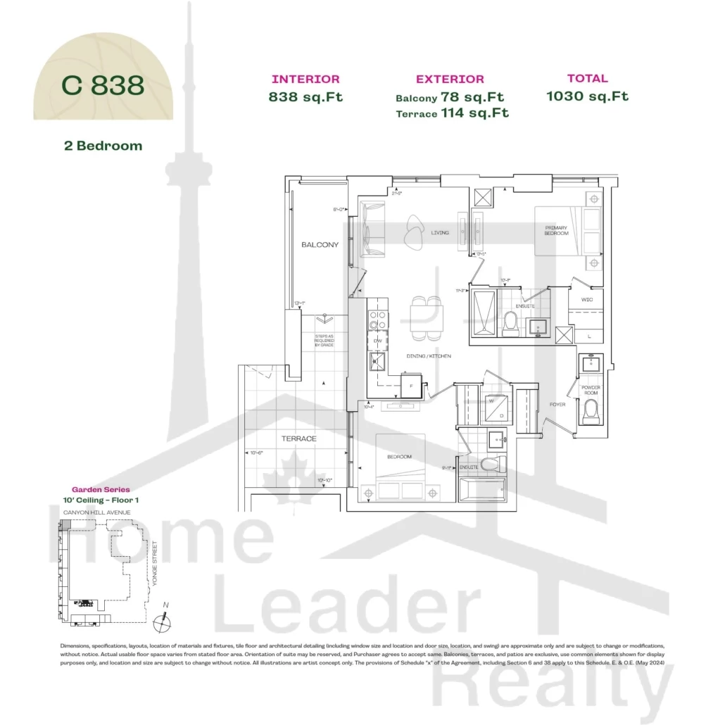 C784 2B 2 Bed , 2 Bath 784 SQFT North West