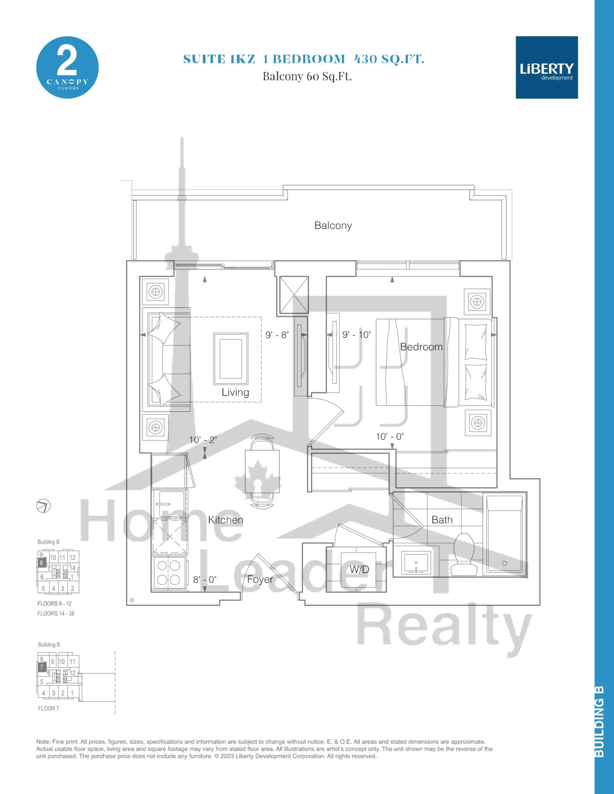 1KZ 1 Bed , 1 Bath 430 SQFT South