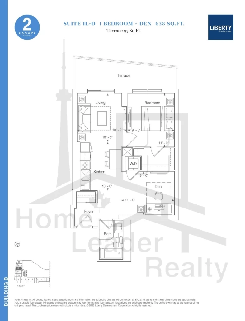 2A+D 2.5 Bed , 2 Bath 770 SQFT East