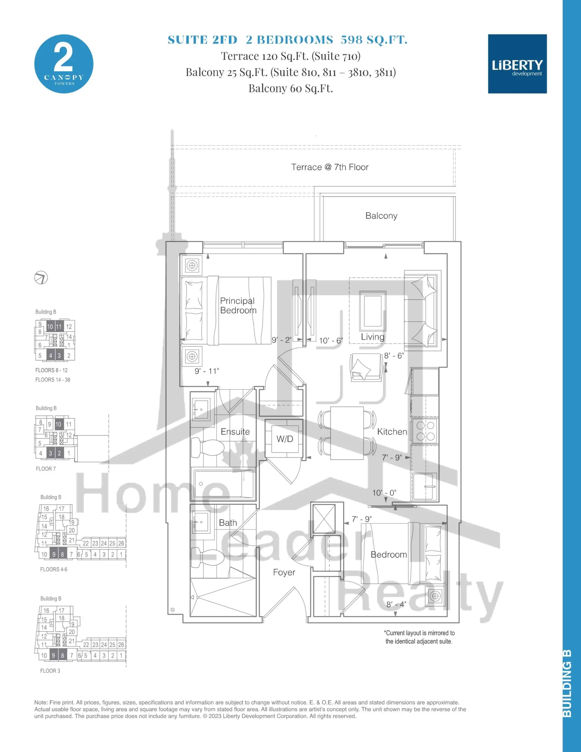 2FD | 2 Bed , 2 Bath | 598 SQFT | West |