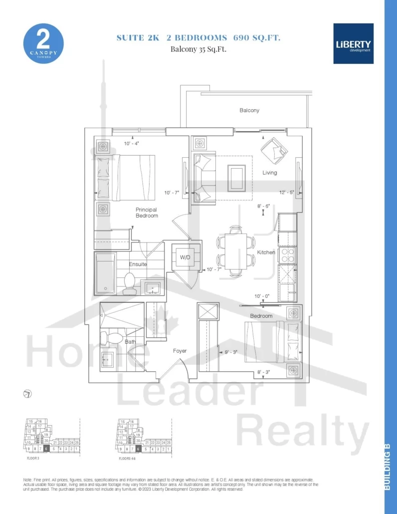 2KZ 2 Bed , 2 Bath 648 SQFT