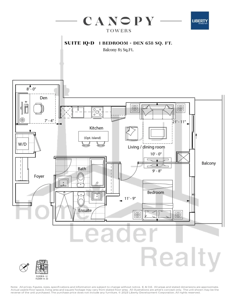 Suite 1Q+D 1.5 Bed , 2 Bath 658 SQFT North